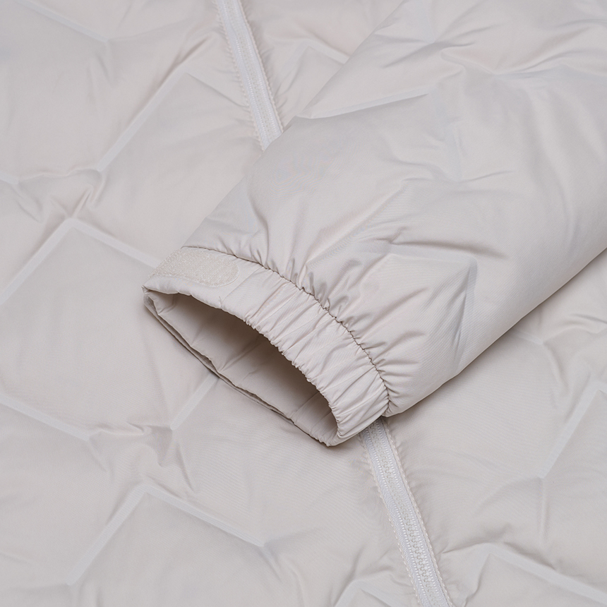 산 능선 웰딩 패턴을 적용하여 세련된 착장을 제안하고 넥리스로 간절기에는 단독 아우터로, 한겨울에는 미드레이어로 착용 가능합니다.