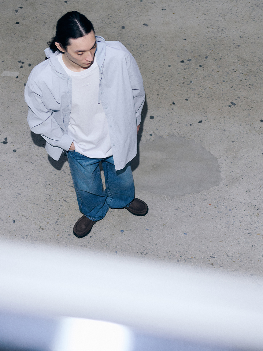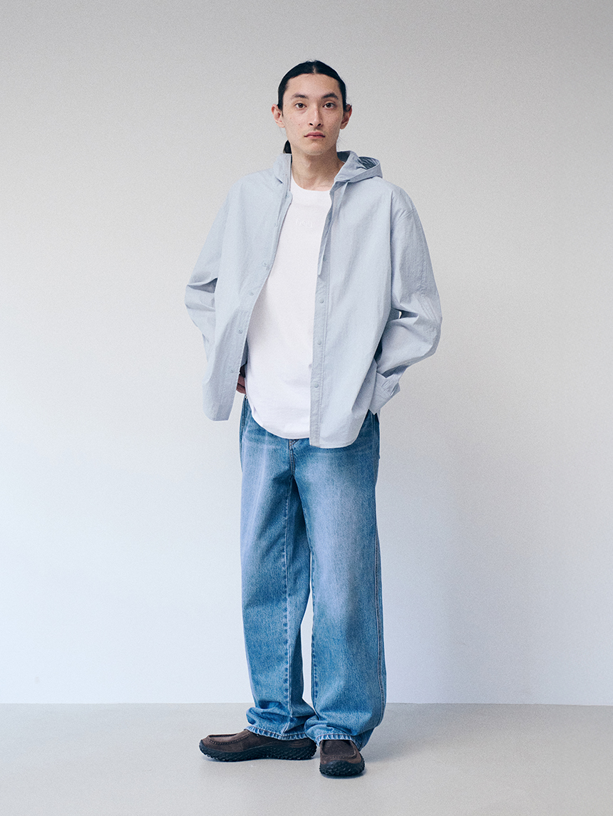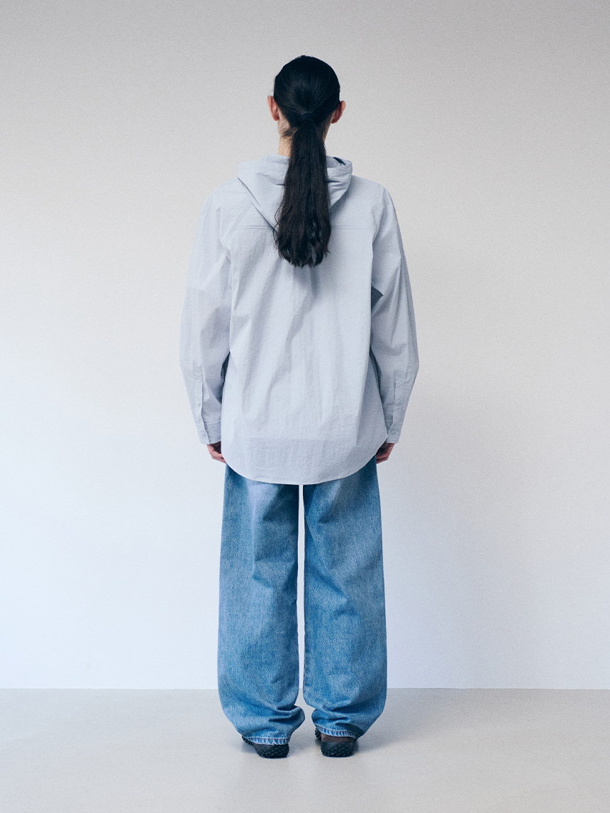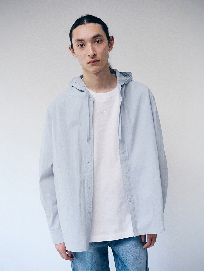 셔츠 카라 대신 후드와 사이드포켓이 더해져 가볍고 활동적으로 착장 가능합니다.