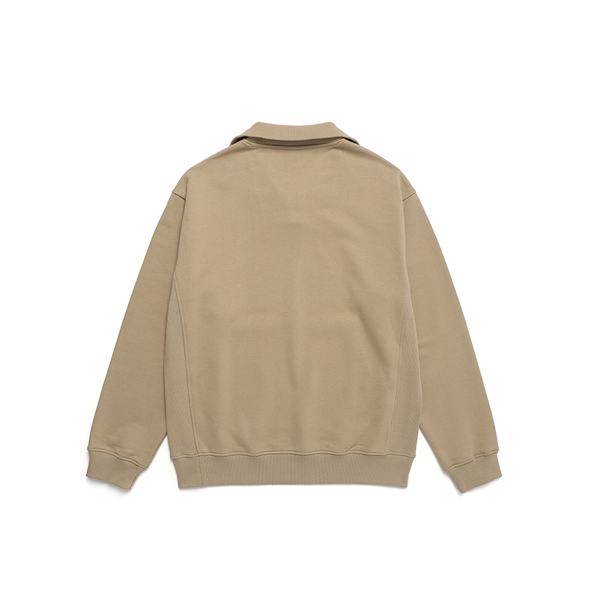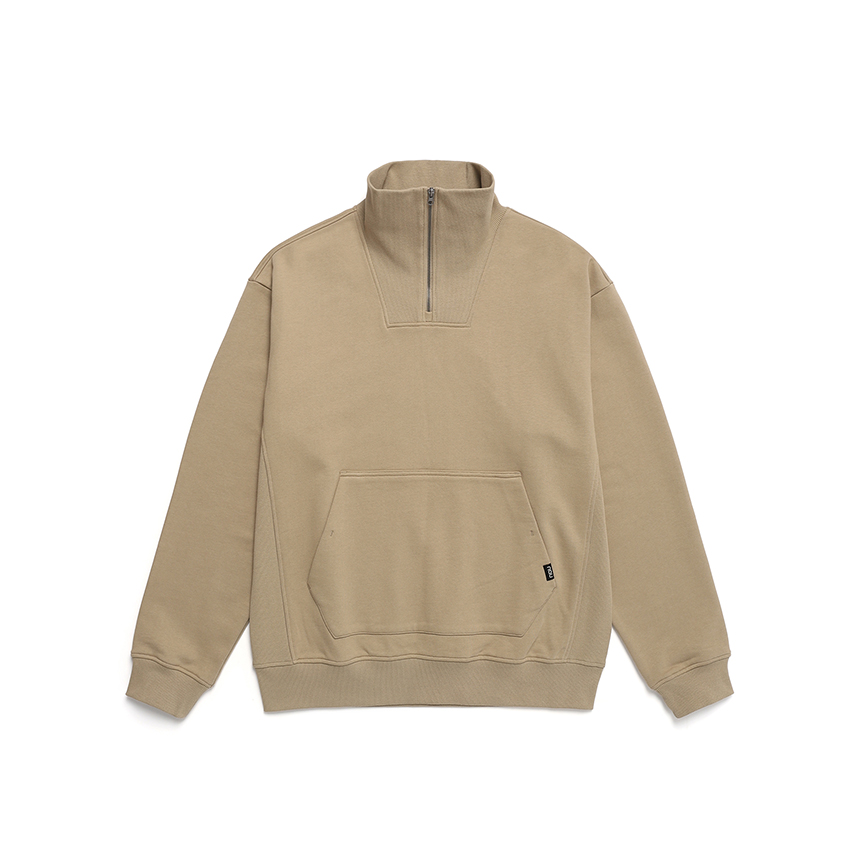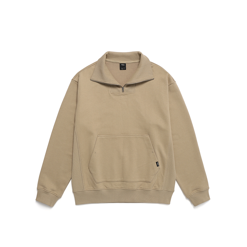 여유 있는 세미 루즈 핏의 남녀 공용 하프 집업 스웻 셔츠입니다.