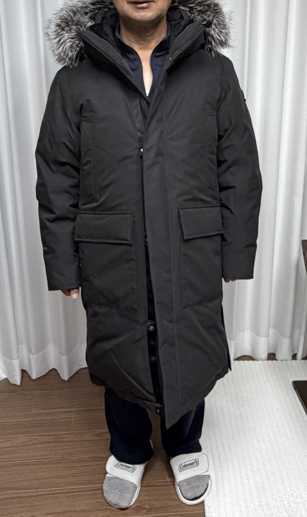 | 소재 | 겉감 : 폴리에스터 100%, 겉감 : 폴리에스터 100%, 배색 : 폴리에스터 100%, 배색 : 폴리에스터 100%, 안감 : 나일론 100%, 안감 : 나일론 100%, 안감2 : 폴리에스터 100%, 안감2 : 폴리에스터 100%, 충전재 : 깃털 10%, 충전재 : 깃털 10%, 충전재 : 솜털 90%, 충전재 : 솜털 90%, 후드털 : 천연모피(여우) 100%, 후드털 : 천연모피(여우) 100% |
