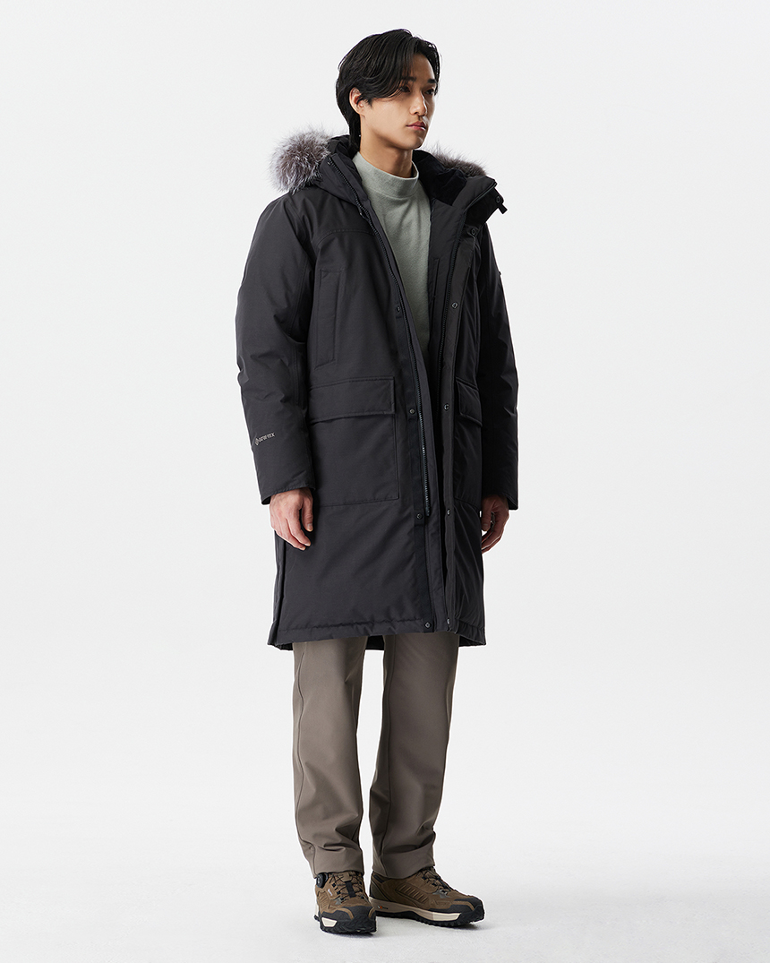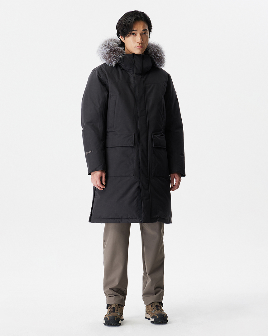 고어텍스 소재를 적용해 수준높은 방풍성과 보온력을 제공하며, 전체심실링 봉제사양으로 한층 강화된 보온력과 방품성을 제공합니다.