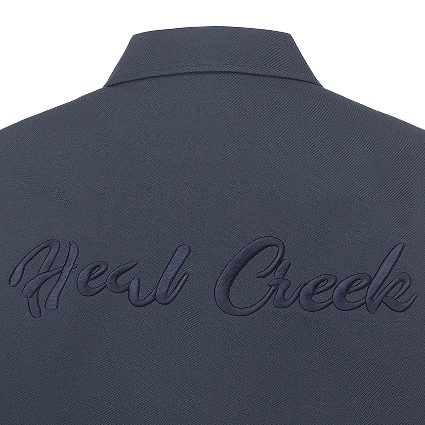- 등판에 힐크릭 흘림체 로고 자수가 포인트로 적용되어 브랜드 아이덴티티를 표현