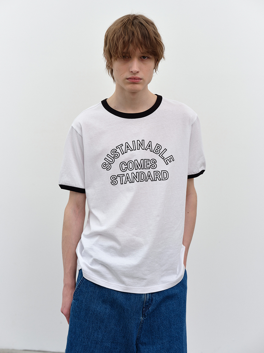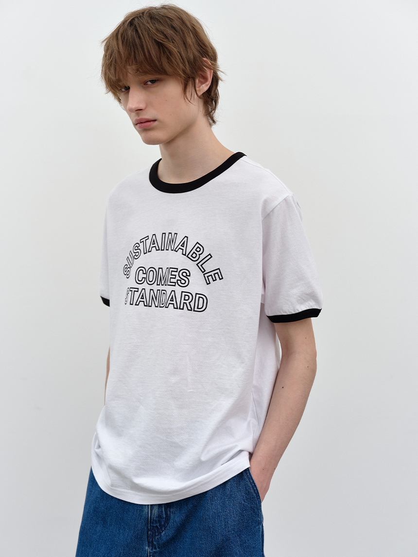 데일리로 부담 없이 활용하기 좋은 레귤러 핏 링거 티셔츠입니다.