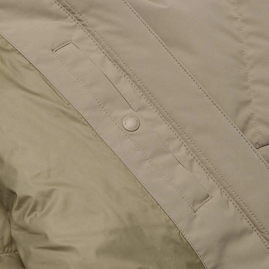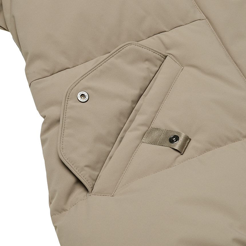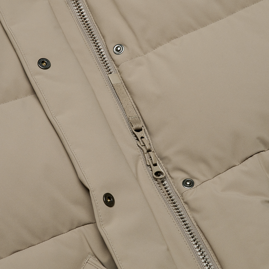 얇은 두께감의 소재를 적용하여 가벼운 착용감을 전달하는 미드기장 다운자켓입니다.