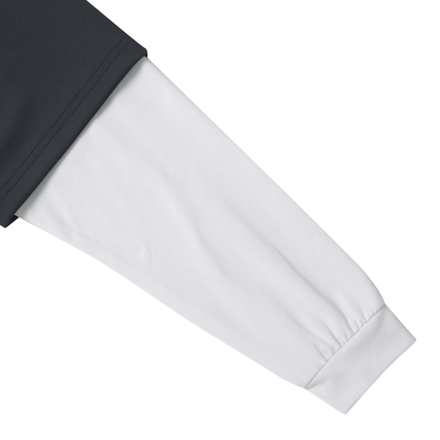 소매배색과 밑단에 잠재권축사 소재를 사용하여 신축성이 뛰어나고, 부르럽고 청량한 터치감을 자랑합니다.