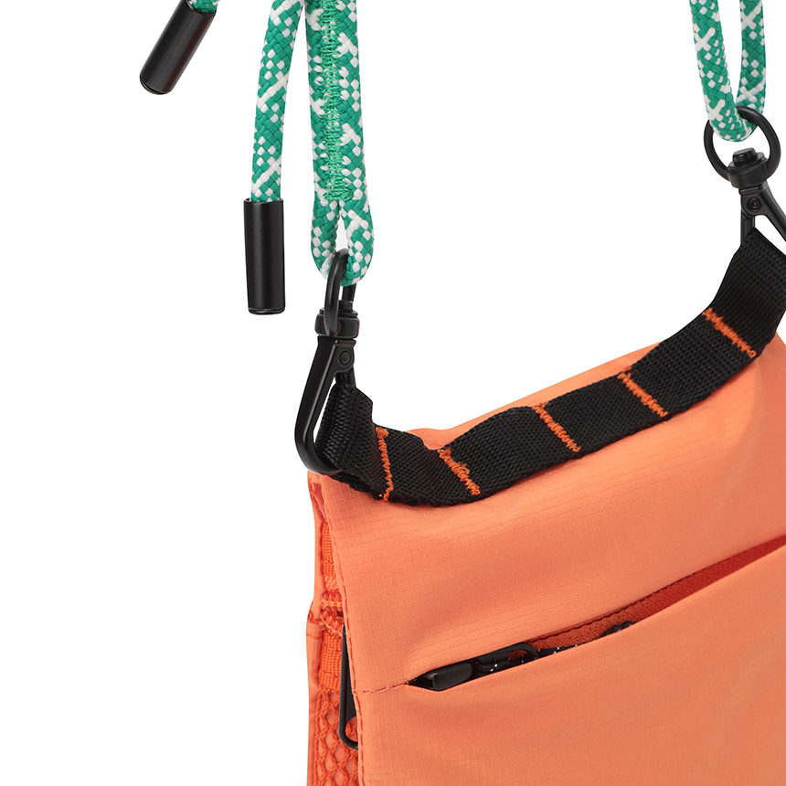 컨셉에 맞는 화사한 색감과 패턴 스트링 끈을 적용하여 포인트 아이템으로 활용이 가능합니다.