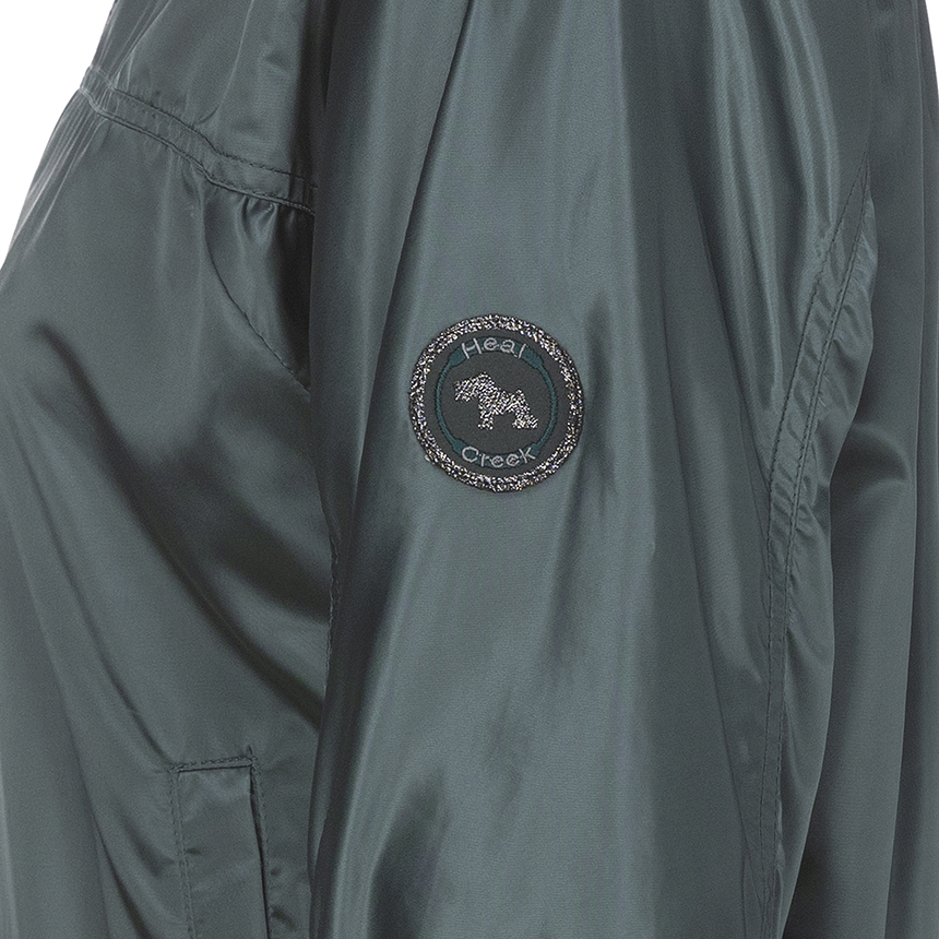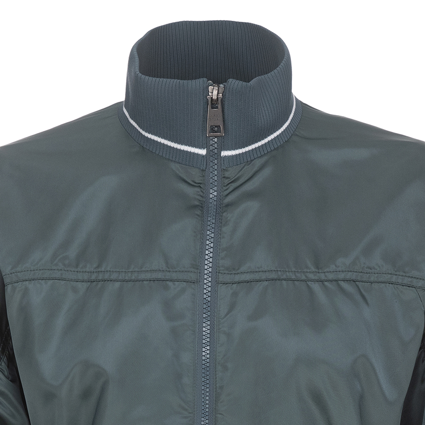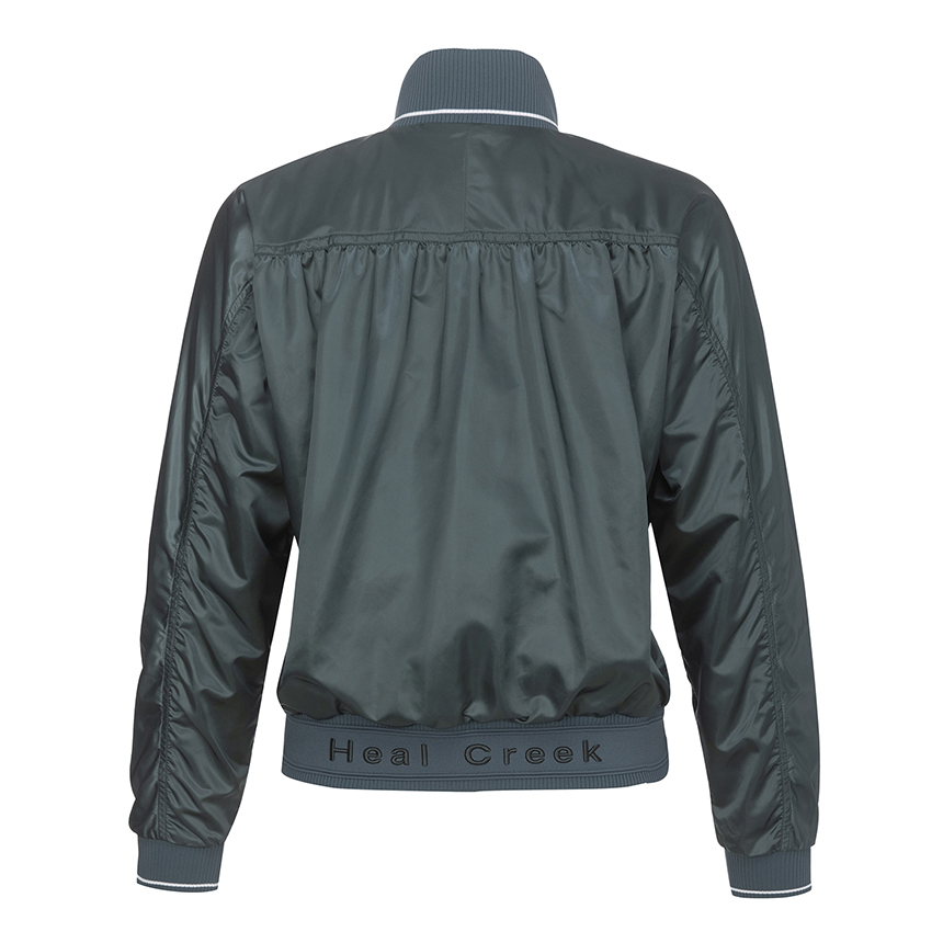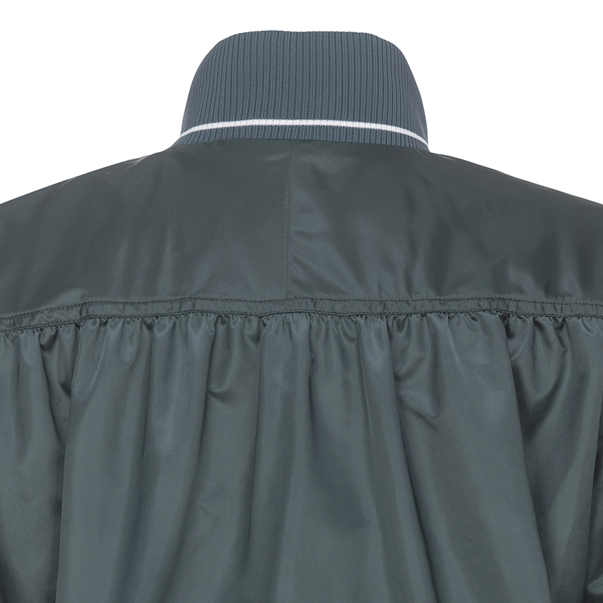-광택소재를 사용한 여성 소매 셔링 포인트 하이넥 자켓스타일