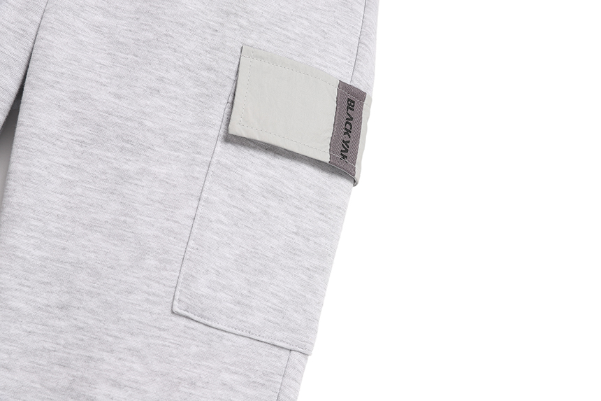 - 팬츠 양쪽 사이드에 포켓과 우븐 플립을 매칭하여