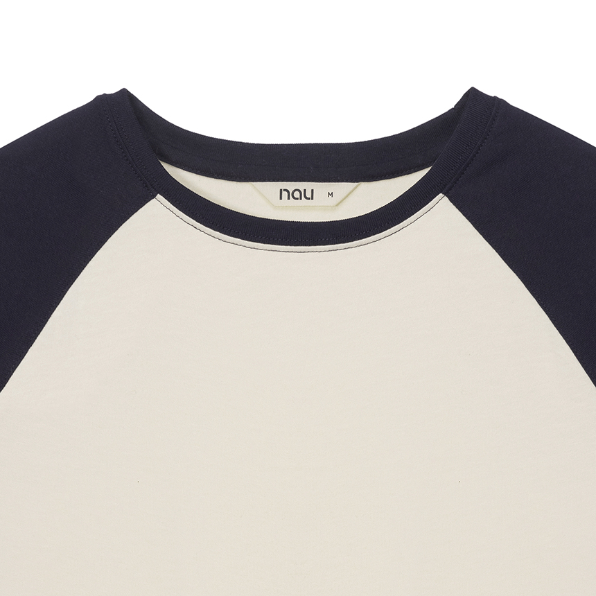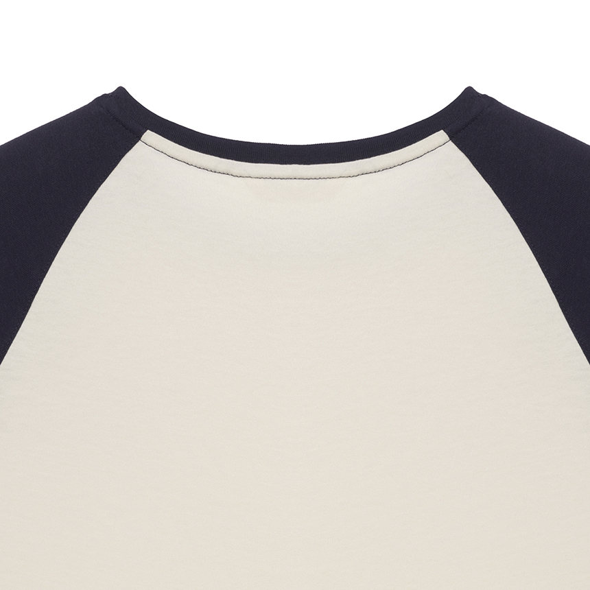 어깨선을 따라 자연스럽게 떨어지는 레글런 구조에 바디와 소매 배색 디테일을 더해 캐주얼한 포인트와 완성도를 높였습니다.