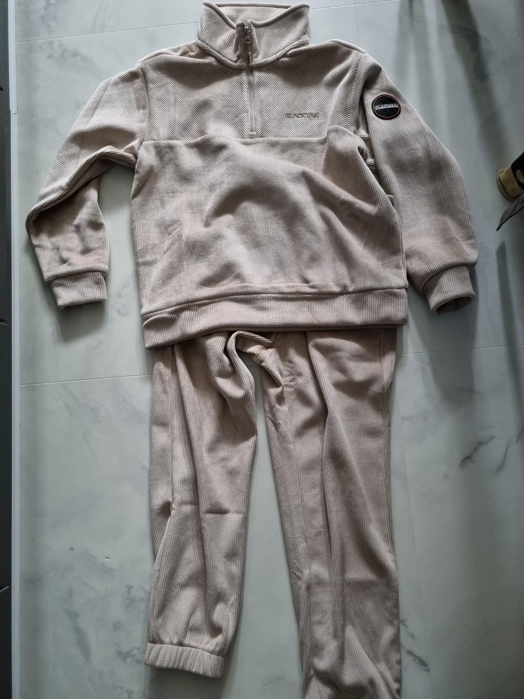 - 트렌디한 소재와 디자인의 코듀로이 '반집업 티셔츠+조거팬츠' 세트 상품입니다.