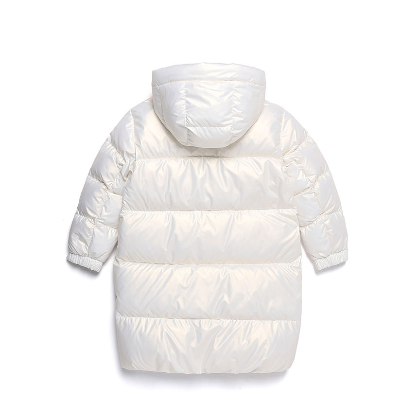 '- 트렌디한 광택감의 소재가 매력적인 여아전용 롱 다운자켓입니다.