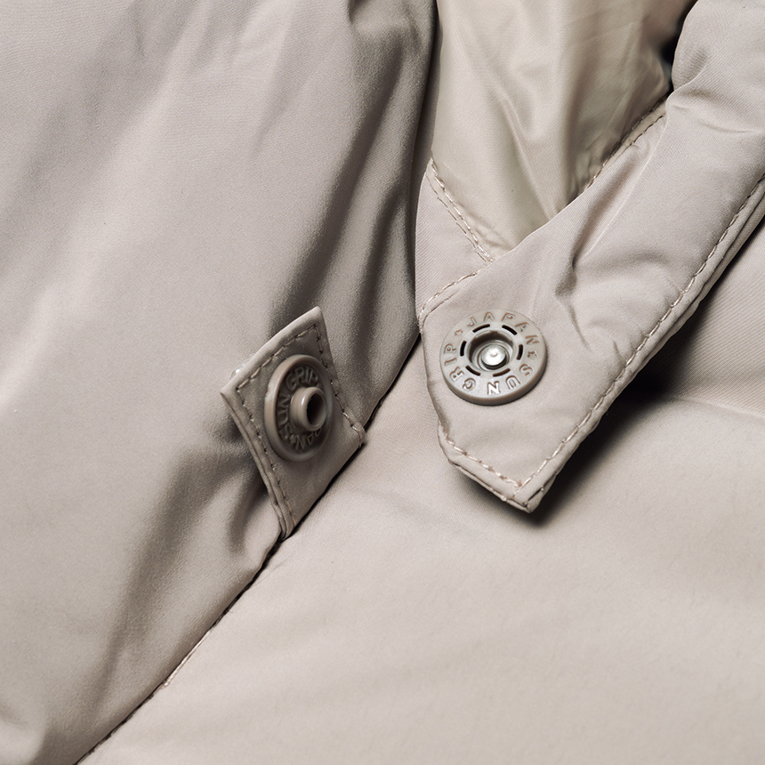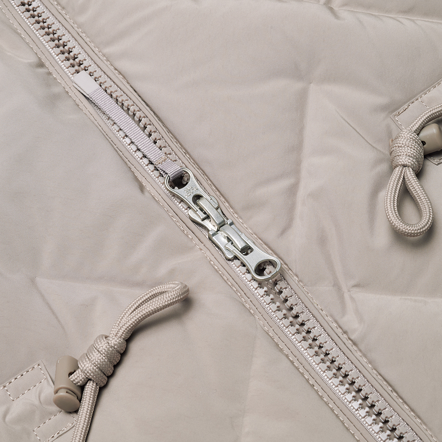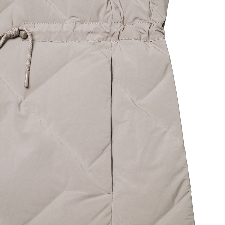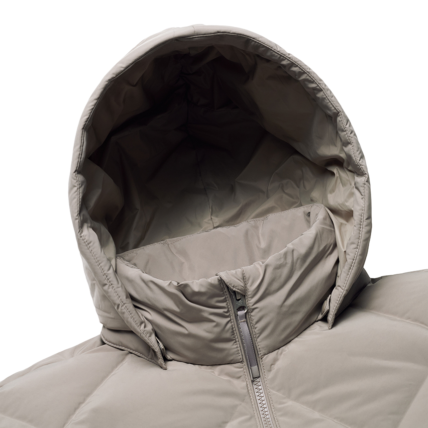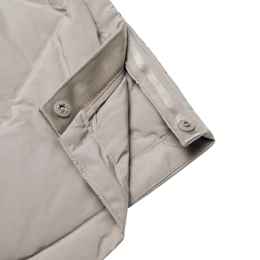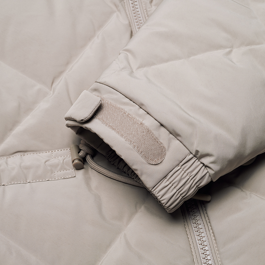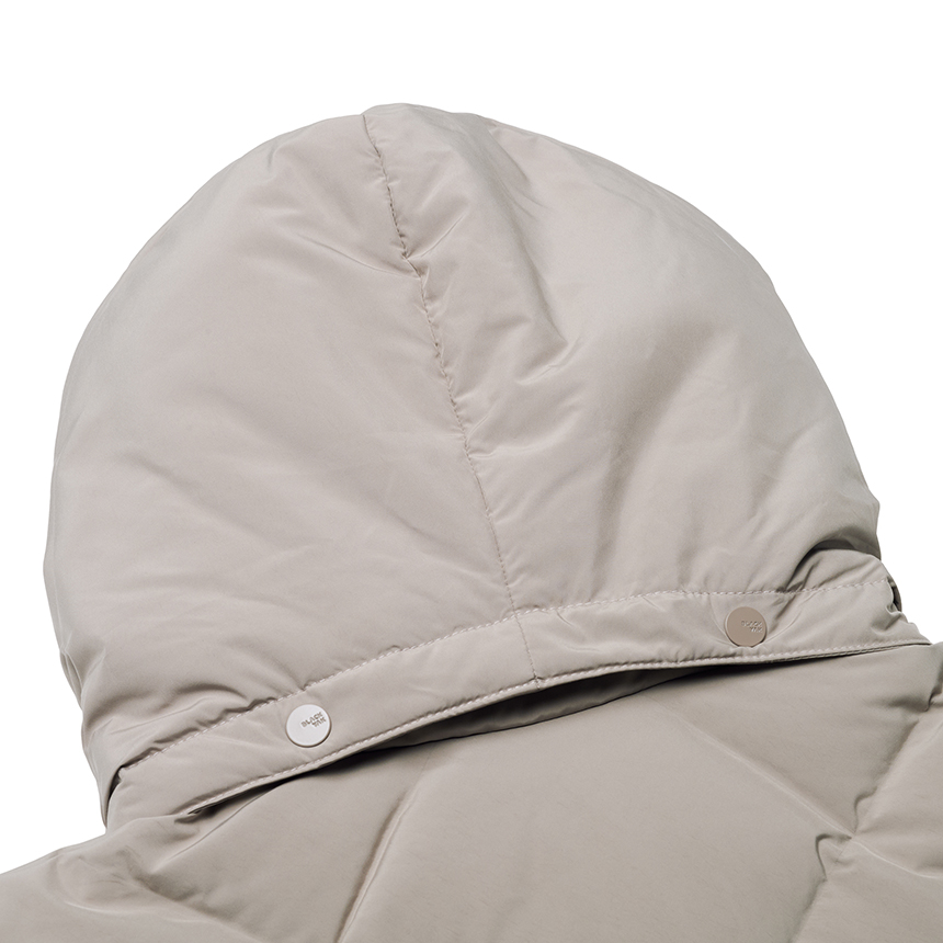 퀼팅 봉제선이 없는 튜브 패브릭을 사용하여 봉제선에서 다운이 새어나오는 삼출 현상 방지 및 보온성을 강화한 중기장 다운입니다.