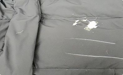 수선 전 | 겉면 3cm정도 찢어짐으로 인한 충전재 노출