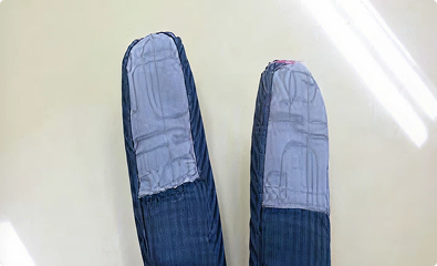 수선 후 | 톤 차이 발생 봉제선 안쪽으로 넣어 부분 판갈이 진행